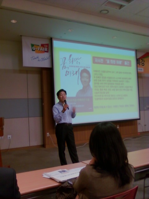 아시아의 빌게이츠 "스티브김" 강연회 페이지 정보 댓글 0건 조회 673회 작성일 2009-09-29 20:48 본문 대한민국우수상품박람회가 킨텍스에서 열렸다. 이곳에 초청강연을 한 "꿈,희망,미래"재단의 스티브김대표님. 아시아의 빌게이츠라는 닉네임을 가진 그의 강연을 통해 삶에 대한 열정 뿐 아니라 노블리스오블리제의 중요함을 깨닫게 되었다. 목록 댓글목록 댓글목록 등록된 댓글이 없습니다.